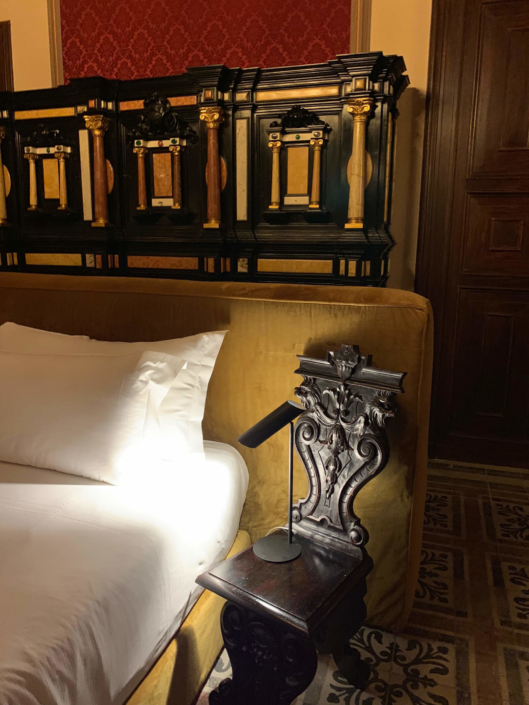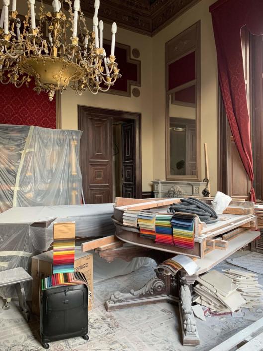 In questo progetto ci siamo trovati a lavorare in ambienti di grande valore storico ed artistico, vincolati dalle Balle Arti, dove quindi non era possibile eseguire alcun intervento di opere edili: dovevamo mantenere inalterati, oltre alla suddivisione degli spazi, pavimenti, muri, ed arredi. Abbiamo quindi recuperato e ristrutturato al meglio quanto presente, rileggendo gli arredi originali in chiave molto marcata e moderna, con tessuti e rivestimenti di qualità eccellente e molto ricchi, in modo da regalargli una seconda vita!